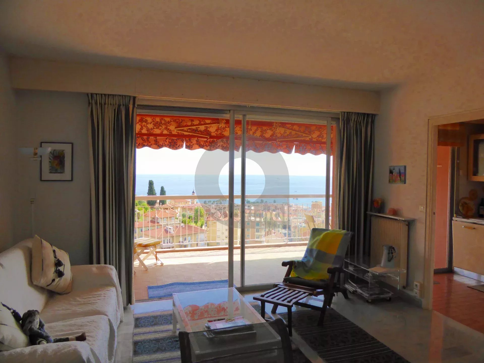 Menton "Terres Chaudes" à deux pas du Centre ville de Menton et du Centre Historique, Spacieux Studio de 35 m2 ouvrant sur une grande terrasse, Vue mer Panoramique, Cuisine équipée indépendante, vendu entièrement meublé, PARKING SOUS-SOL et CAVE
