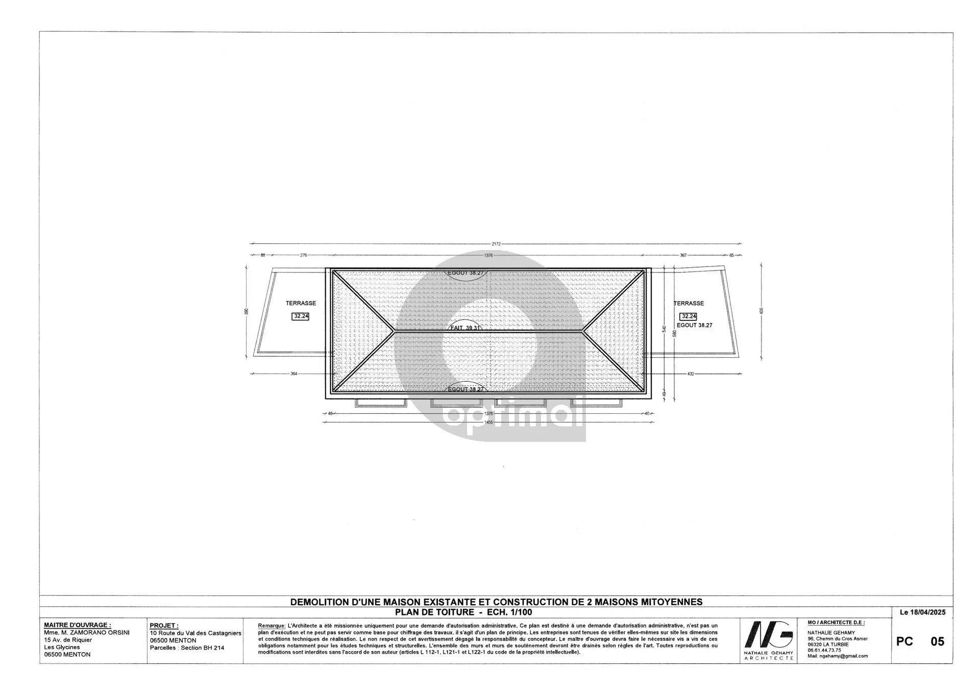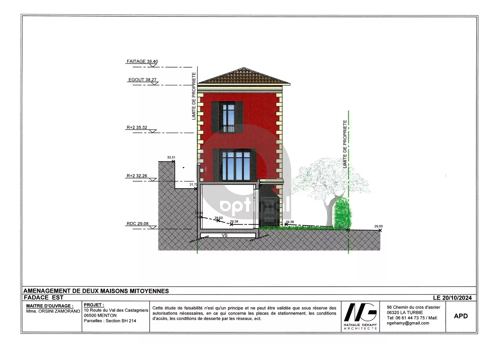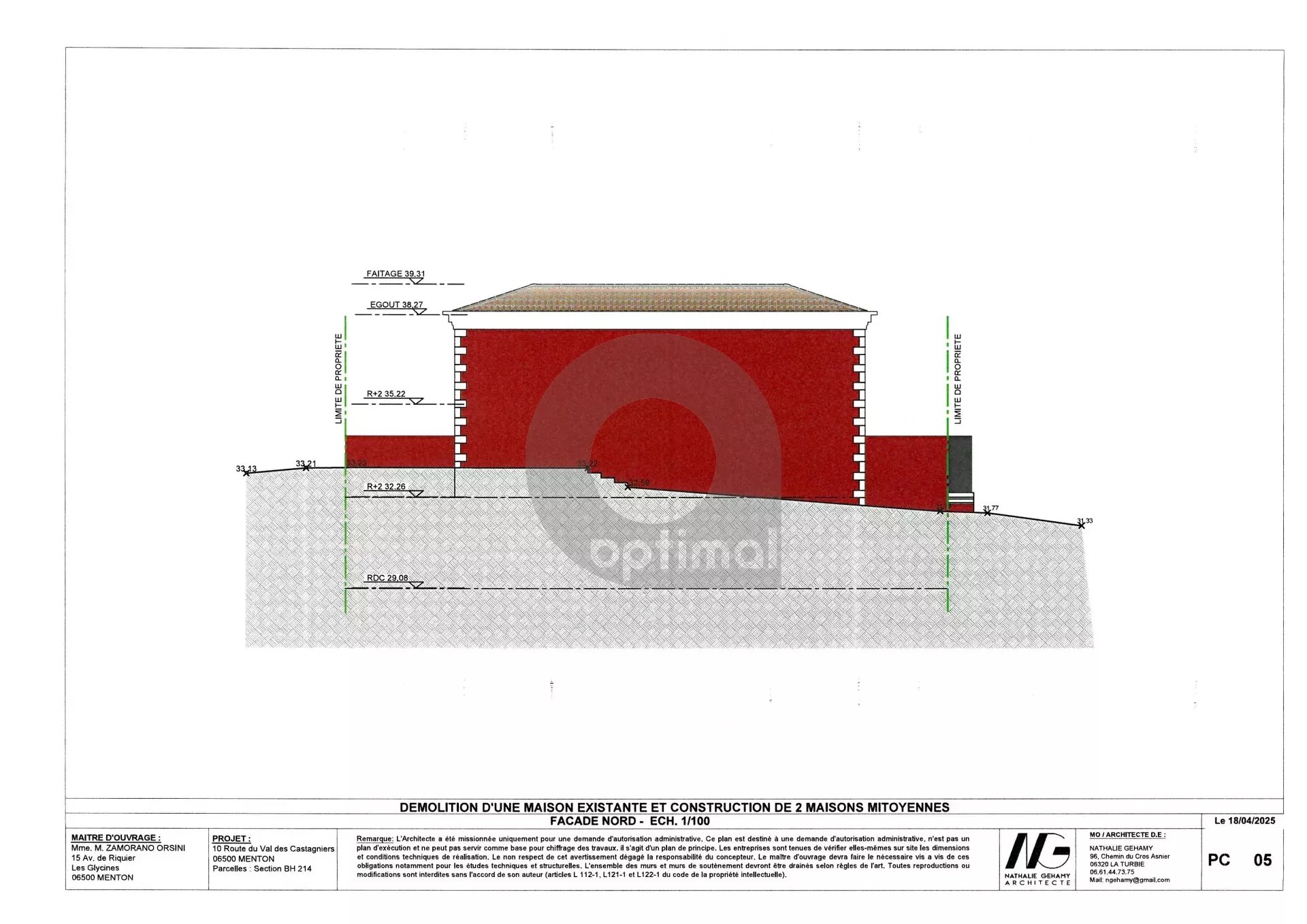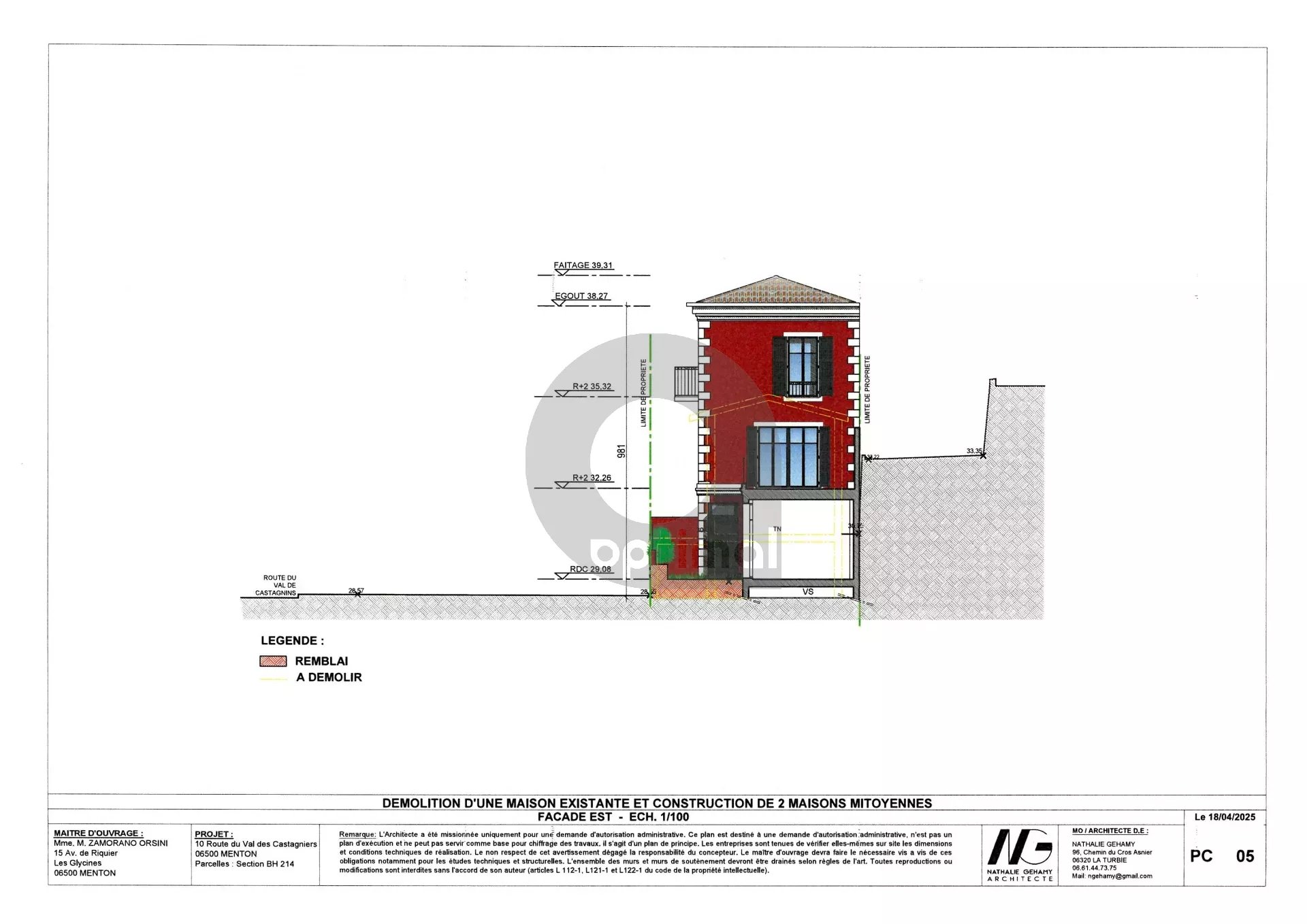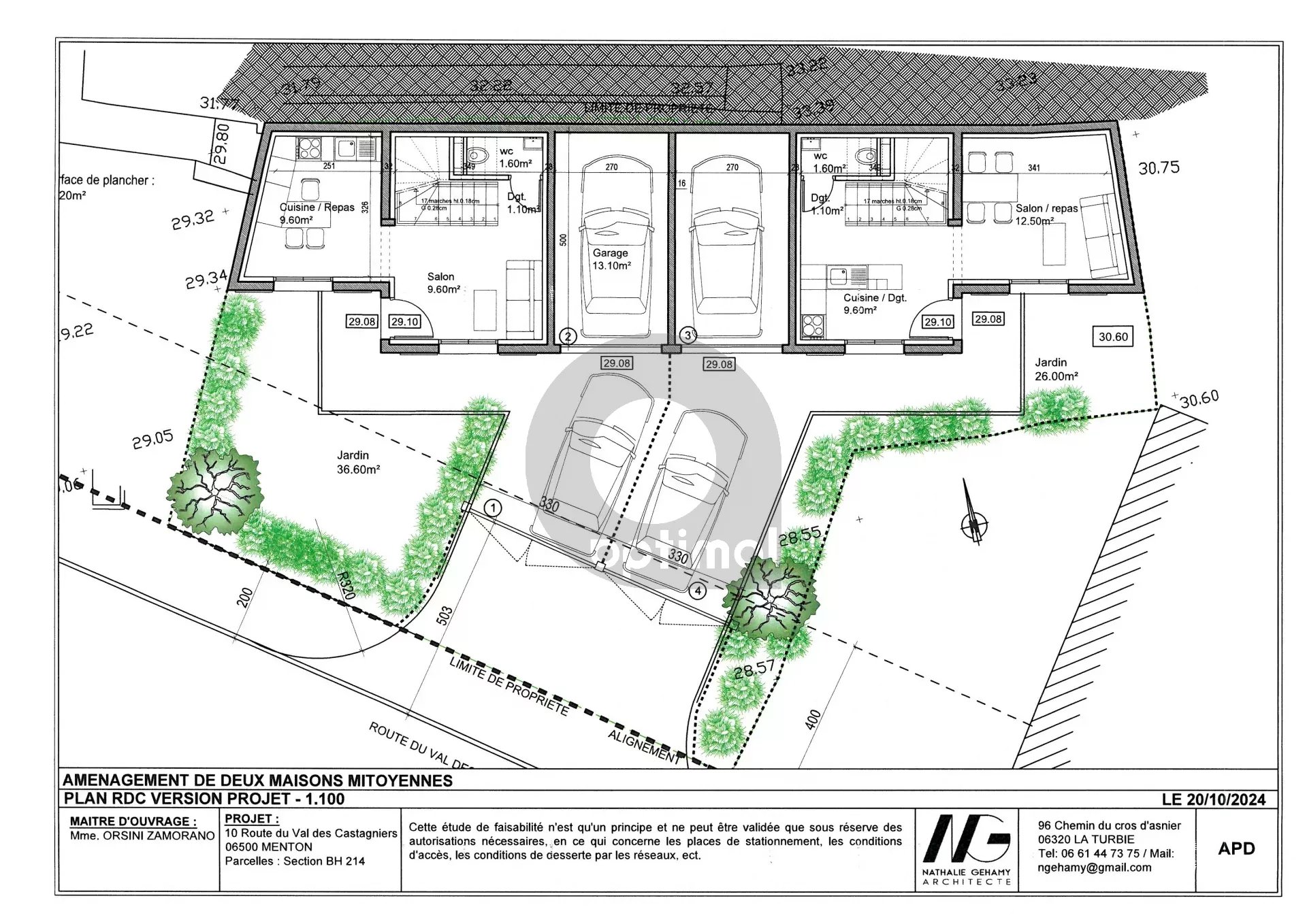 Projet neuf avec une permis accordé et purgé pour la création de deux maisons mitoyennes en copropriété avec rez de chaussée et deux niveaux, jardinets extérieurs, terrasses, garage.